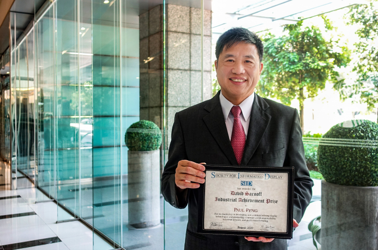 jinnian金年会光电董事长暨执行长彭双浪获颁 SID 国际信息显示学会 (Society for Information Display,SID) “David Sarnoff 产业杰出贡献奖”,本届颁奖典礼虽因疫情无法举办,但仍透过精心录制的影片表达个人及公司获主办单位肯定的欣喜之情。