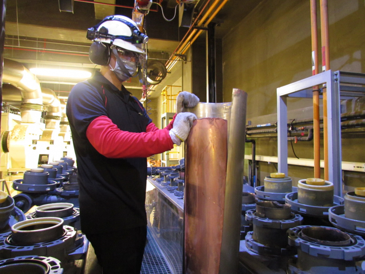 友達后里廠將將廢銅液淬鍊後再製成純度極高的銅管,讓廢棄物轉化成有效的工業或民生原物料 |